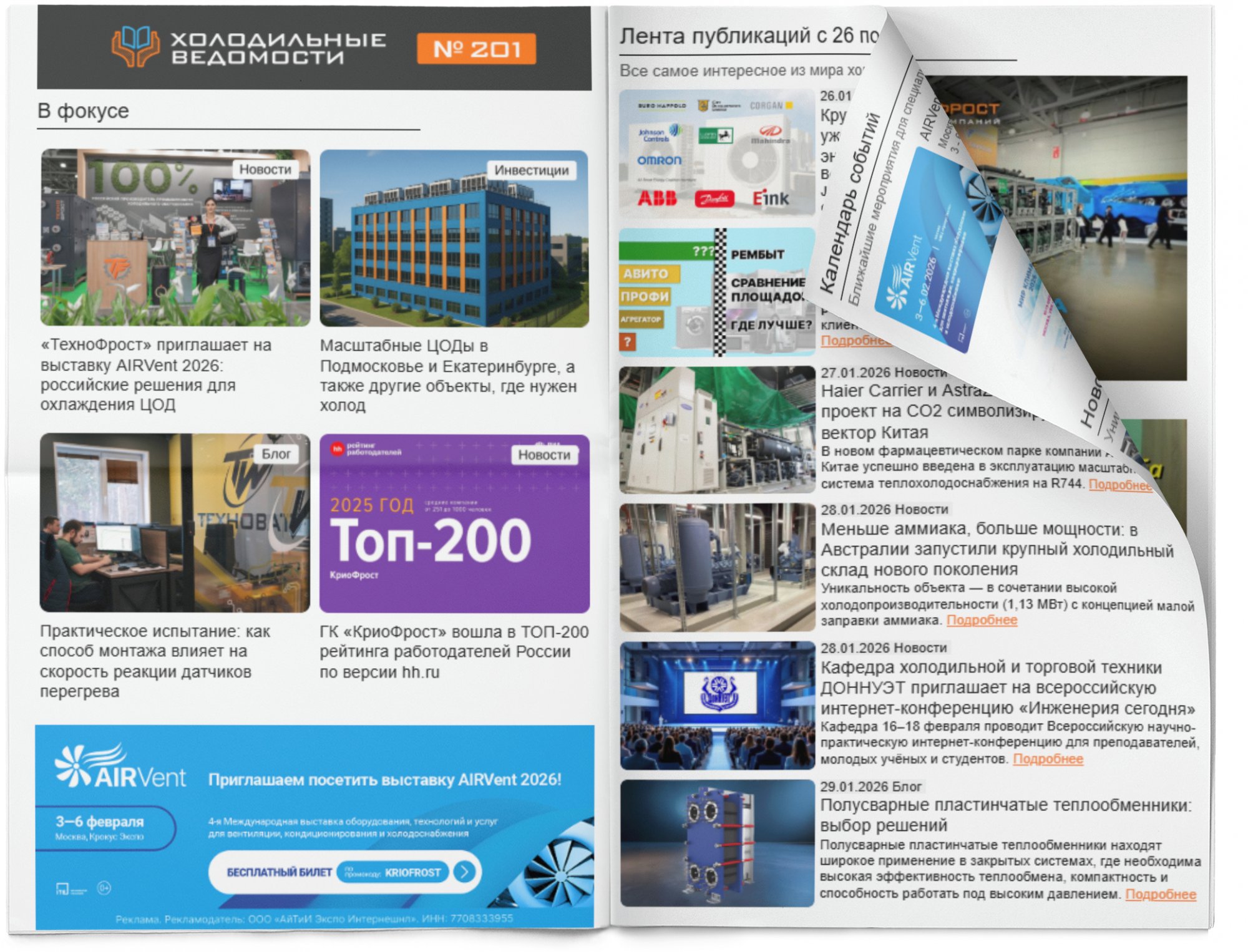 Опубликован новый, 201-й выпуск еженедельной интернет-газеты "Холодильные Ведомости".