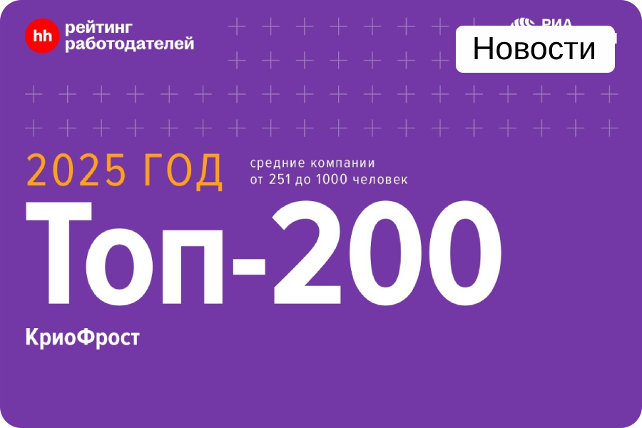 - Карьера: ГК «КриоФрост» вошла в ТОП-200 рейтинга работодателей России по версии hh.ru!