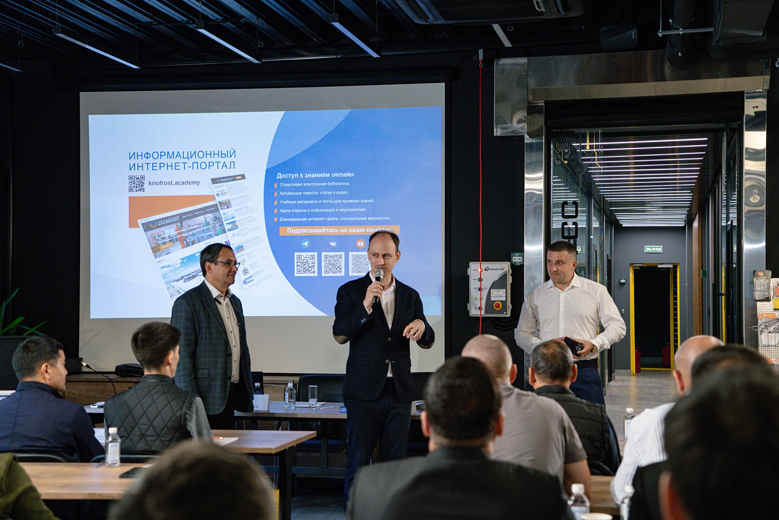 Основатель и руководитель ГК «КриоФрост» Александр Котляр поделился опытом развития бизнеса и внедрения инновационных решений. Руководитель «Академии КриоФрост» Илья Малафеев представил примеры успешного использования природных хладагентов на реальных объектах.